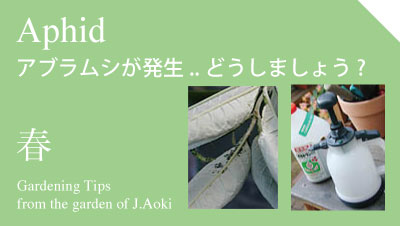 ガーデニングのヒント 最近ガーデニングを始めた友人への、私のアドバイスを季節ごとにまとめてみました。ガーデニング初心者の方にも参考になるかも… アブラムシが発生どうしましょう? ある朝マリーゴールドの花が無くなっていた?! 梅雨の前の庭仕事 コンテナは消毒してから植え替え?! 寄せ植えの土はリサイクルして つるバラの誘引 雪や霜から草花を守りましょう from J.Aoki Gardeningに戻る
